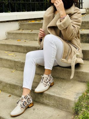 $80.991Botín de Cuero Humo con animal print