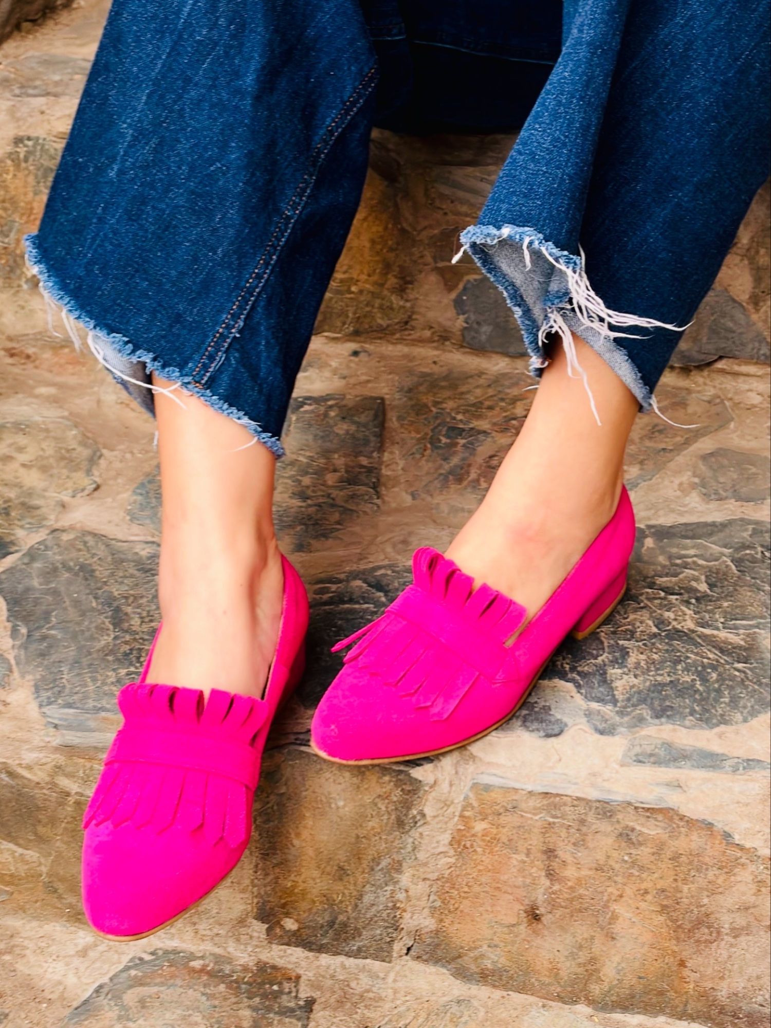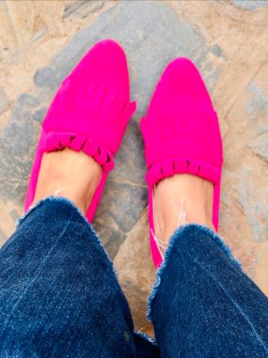 $67.990Mocasín Reno Fucsia con flequillo