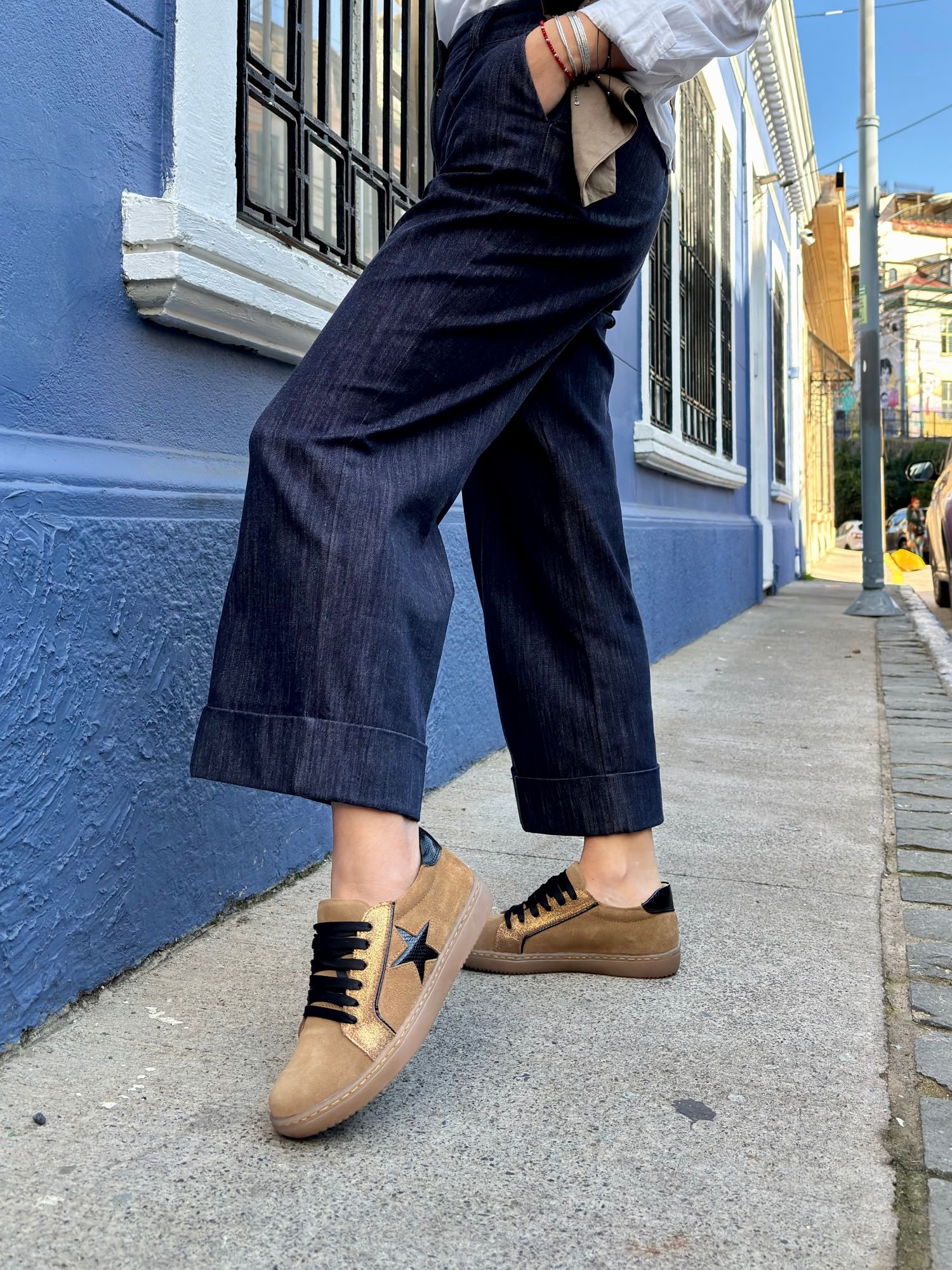 Zapatilla beige estrella negra